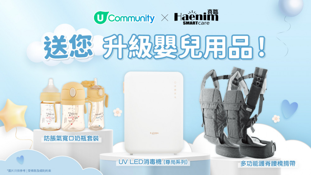 湊BB有時真係又忙又攰👶~但只要用啱產品就可以減輕負擔!U Community社群 X Haenim 送您升級嬰兒用品,包括UV LED消毒機、奶樽套裝及多功能揹帶,全方位照顧初生嬰兒需要,令爸媽湊B更加輕鬆!